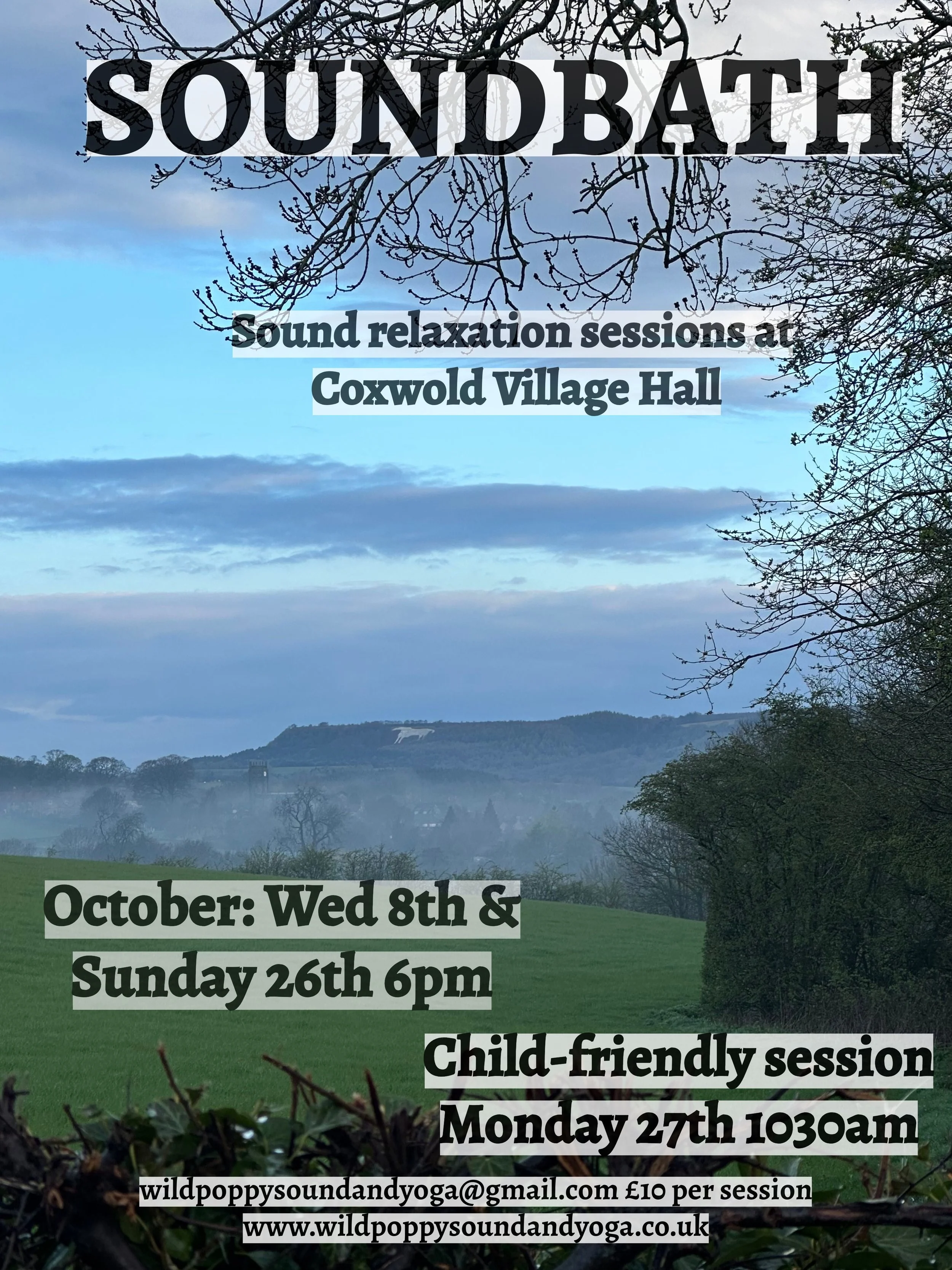 Email wildpoppysoundandyoga@gmail.com to book or for more information Oct 22 Child-friendly Soundbath at Mojo Fit Studio, Beckenham Wednesday 22 October 2025 10:30 11:25 Mojo Fit Studio, Beckenham BR3 3NL (map) Google Calendar ICS View Event → Oct 23 Soundbath at Mojo Fit Studio, Beckenham Thursday 23 October 2025 19:00 19:55 Mojo Fit Studio, Beckenham BR3 3NL (map) Google Calendar ICS View Event → Oct 26 Soundbath at Coxwold Village Hall Sunday 26 October 2025 18:00 18:55 Google Calendar ICS View Event → Oct 27 Child-friendly Soundbath at Coxwold Village Hall Monday 27 October 2025 10:30 11:25 Google Calendar ICS View Event → Oct 29 Child-friendly Soundbath at Mojo Fit Studio, Beckenham Wednesday 29 October 2025 10:30 11:30 Mojo Fit Studio, Beckenham BR3 3NL (map) Google Calendar ICS View Event → Oct 8 Soundbath at Coxwold Village Hall Wednesday 8 October 2025 18:00 18:55 Google Calendar ICS View Event →